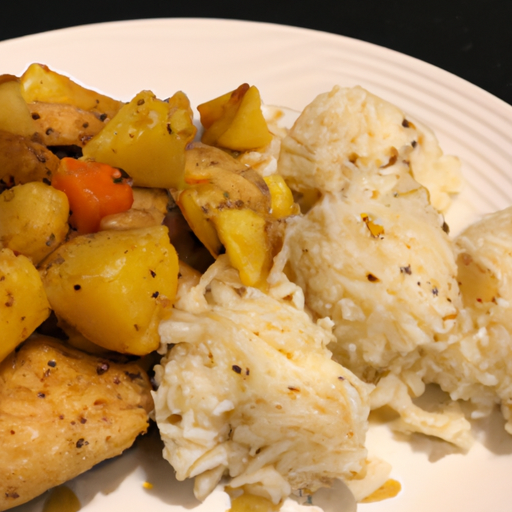 Serveer de zoete aardappelen en de basmati rijst samen met de gebakken kippenfilet. Garneer het gerecht met peterselie.